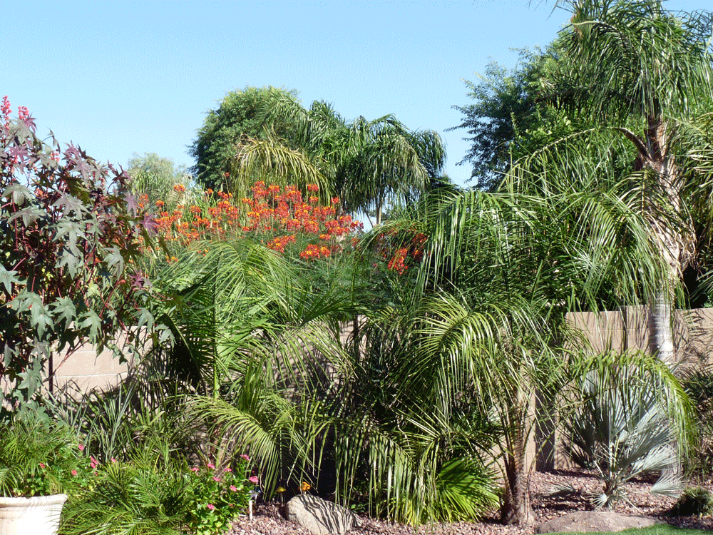 So, I'm a confirmed Mule palm fan. Here's a 3 month growth comparison showing two Mule palms in our yard in Chandler. Picture 1 from September 2012, picture 2 June 2012. The palm at right has pushed at least 3 new large fronds and ol'stubby at left has stretched upward with new growth. Nice thing about the Mules is they'll look just as good following winter cold as now. Location: full day sun with Western exposure.