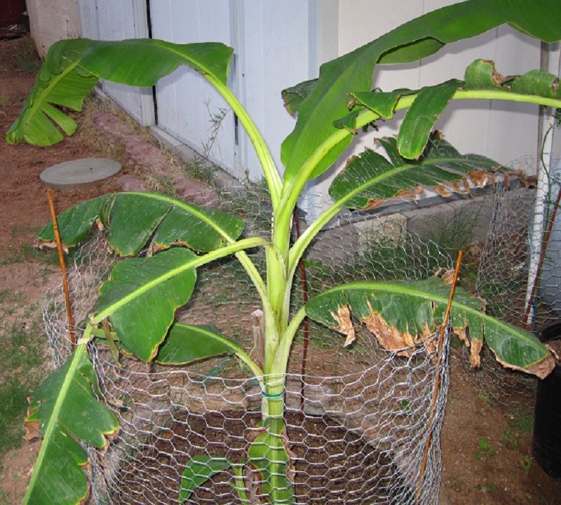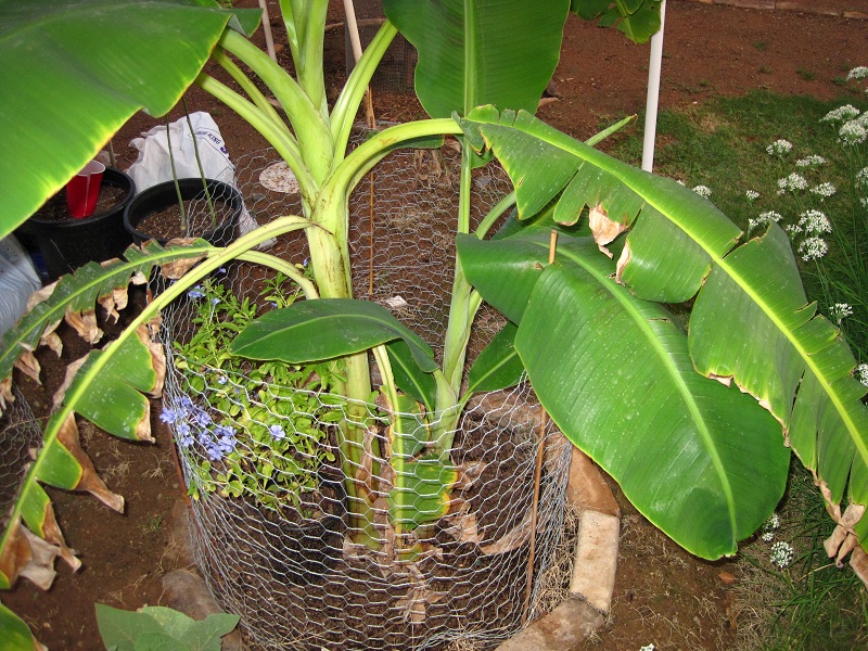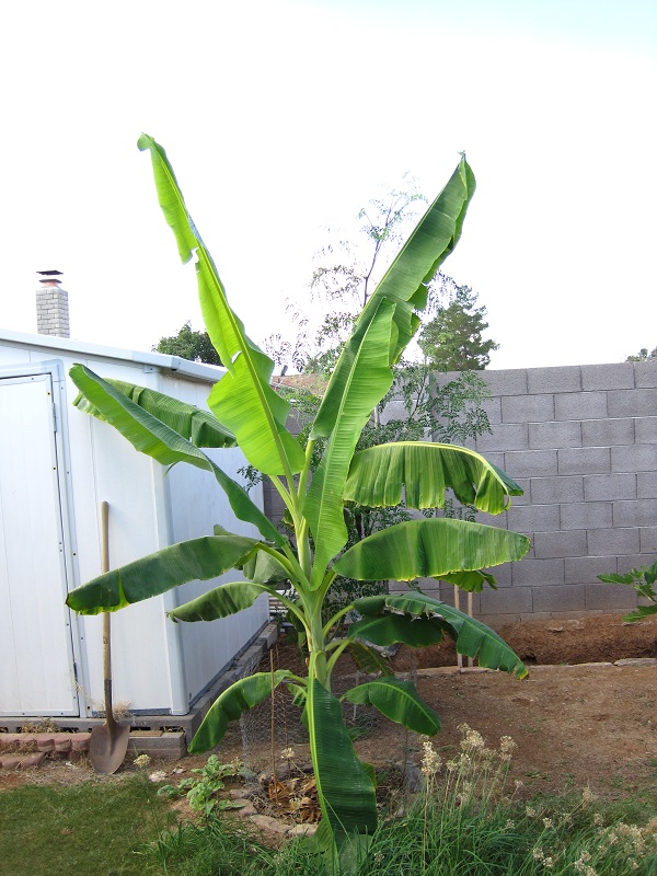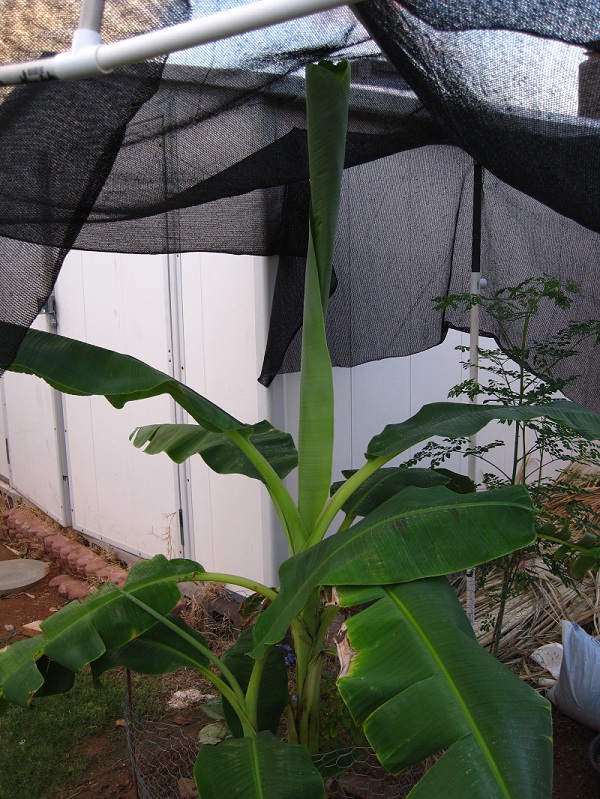 The Banana plant has been doing great getting a new leaf every week and now that it rained the leaves are getting huge. The shade cloth is 6 1/2 feet high.