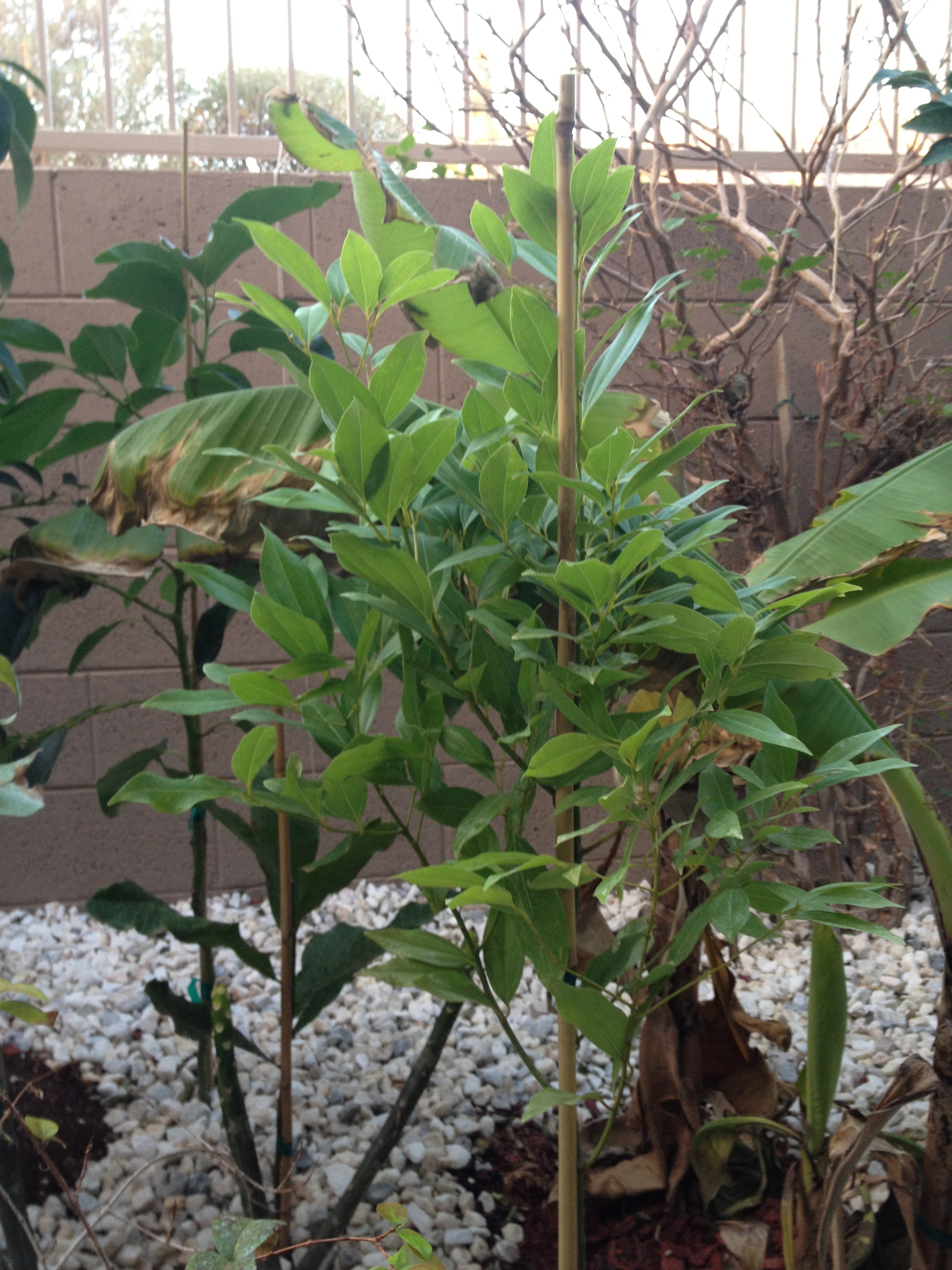 The Fuerte, Coffee, and Cassia have been in the ground about a year. The new plants I am experimenting with are a Cashew, a Bilimbi Cucumber Tree, and a Huilboerboon. I live in an area of Phoenix that does not go below freezing, so I have a little more leeway. Although it has hit 32 degrees twice since I moves here in 2001.