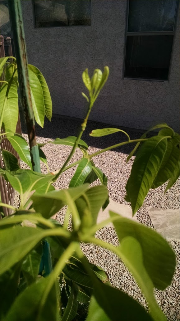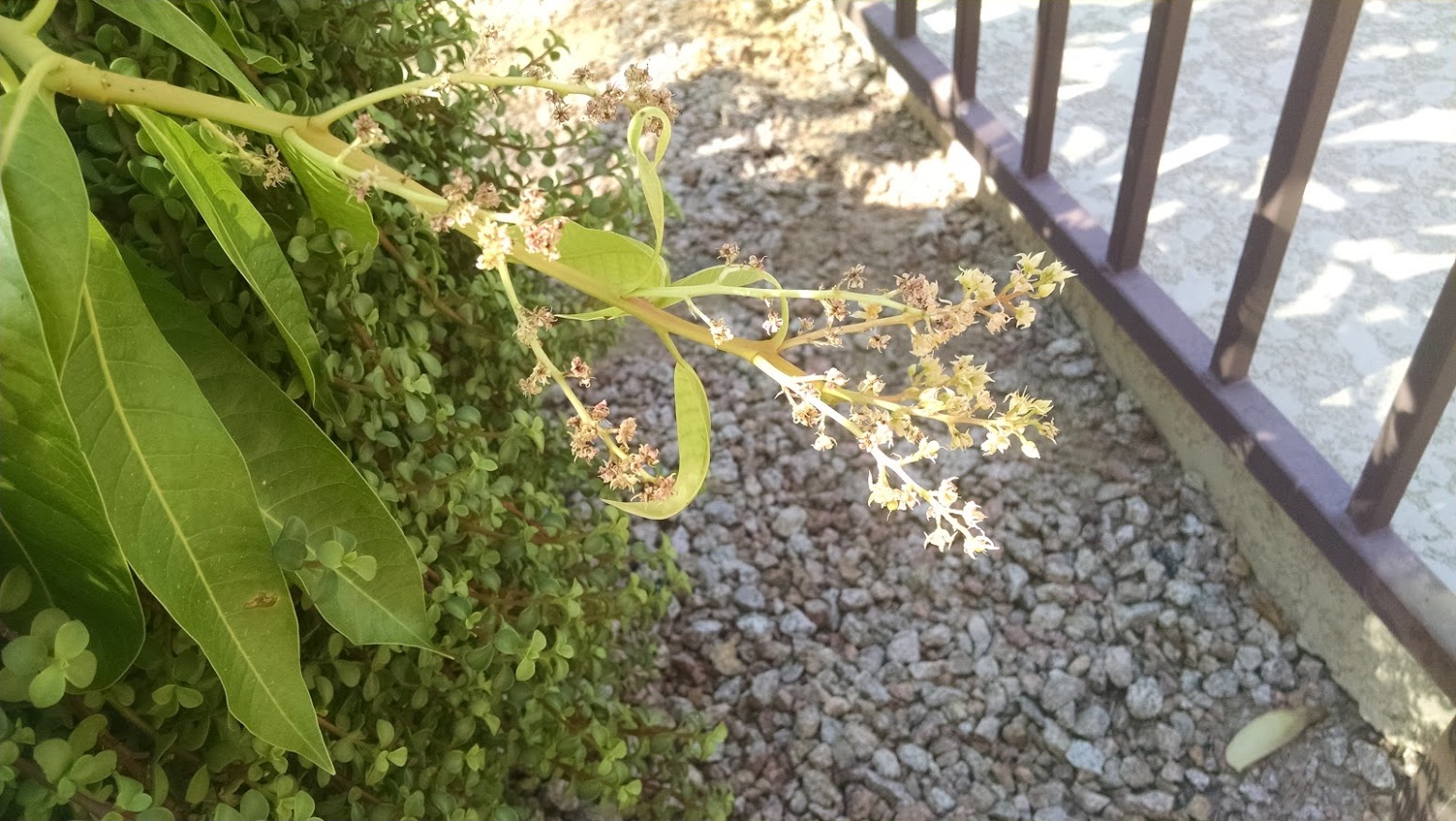 As an aside, this tree is growing like a beast. It is *very* lanky, it has put on at least 8 growth flushes since the spring. It took my 115 F heat like it was nothing. No crispy leaves and it just continues to push growth. (my Manila on the other hand has a bunch of crispy leaf tips that correlate to days over 110 F). And here is the kicker: 3 weeks ago it started flowering!! It was way too young to flower in the spring (it was just a stick, with a really high cleft graft and a few pushed out buds on top).