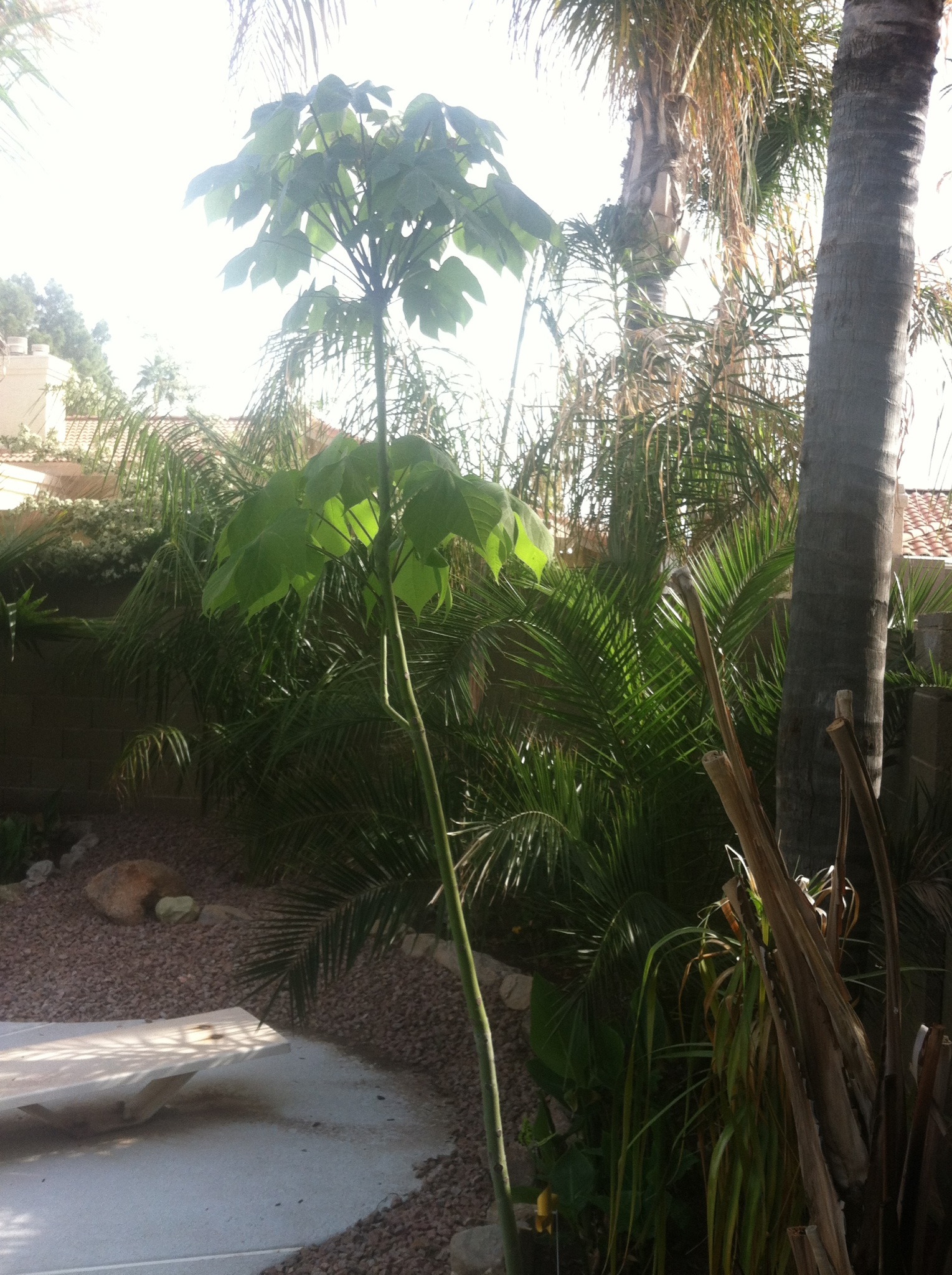 Moringa Tree. Gets beat back by frost each year with no protection but grows about 6-8 feet each summer. Planted this 2 years ago as a 1 foot tall seedling!