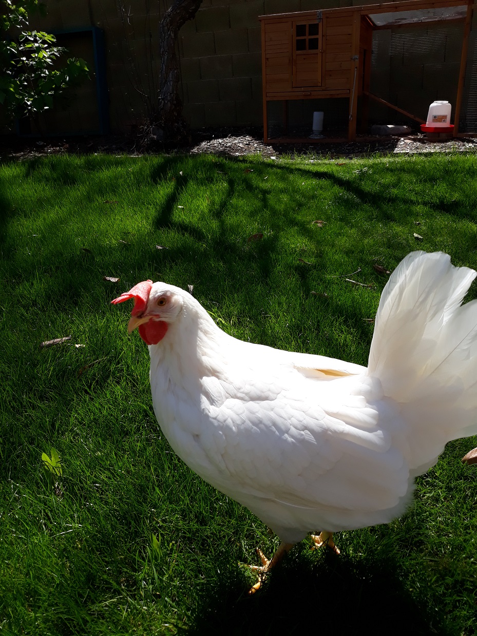 Chickens must be one the fatest growing animals on the planet. In 6 months our chicken, named Chicky, was all grown up and started laying eggs. Up until about 5 months we kept her in the house in a box. She is apparently a Leghorn.