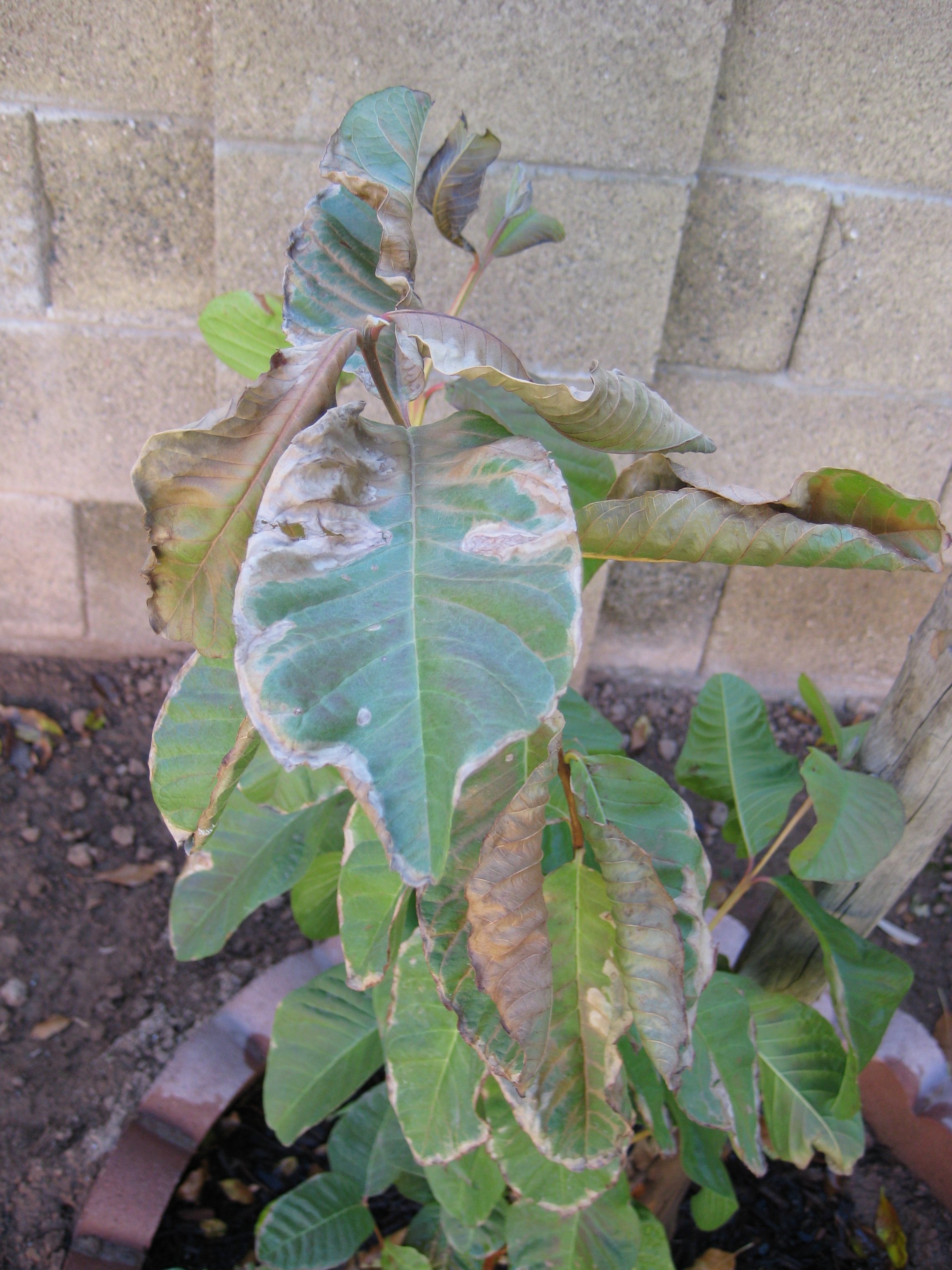 | I agree. That's frost damage. Not bad though. Like DaTropicalMan said, leave those leaves there because they actually help protect the plant from future freezes.