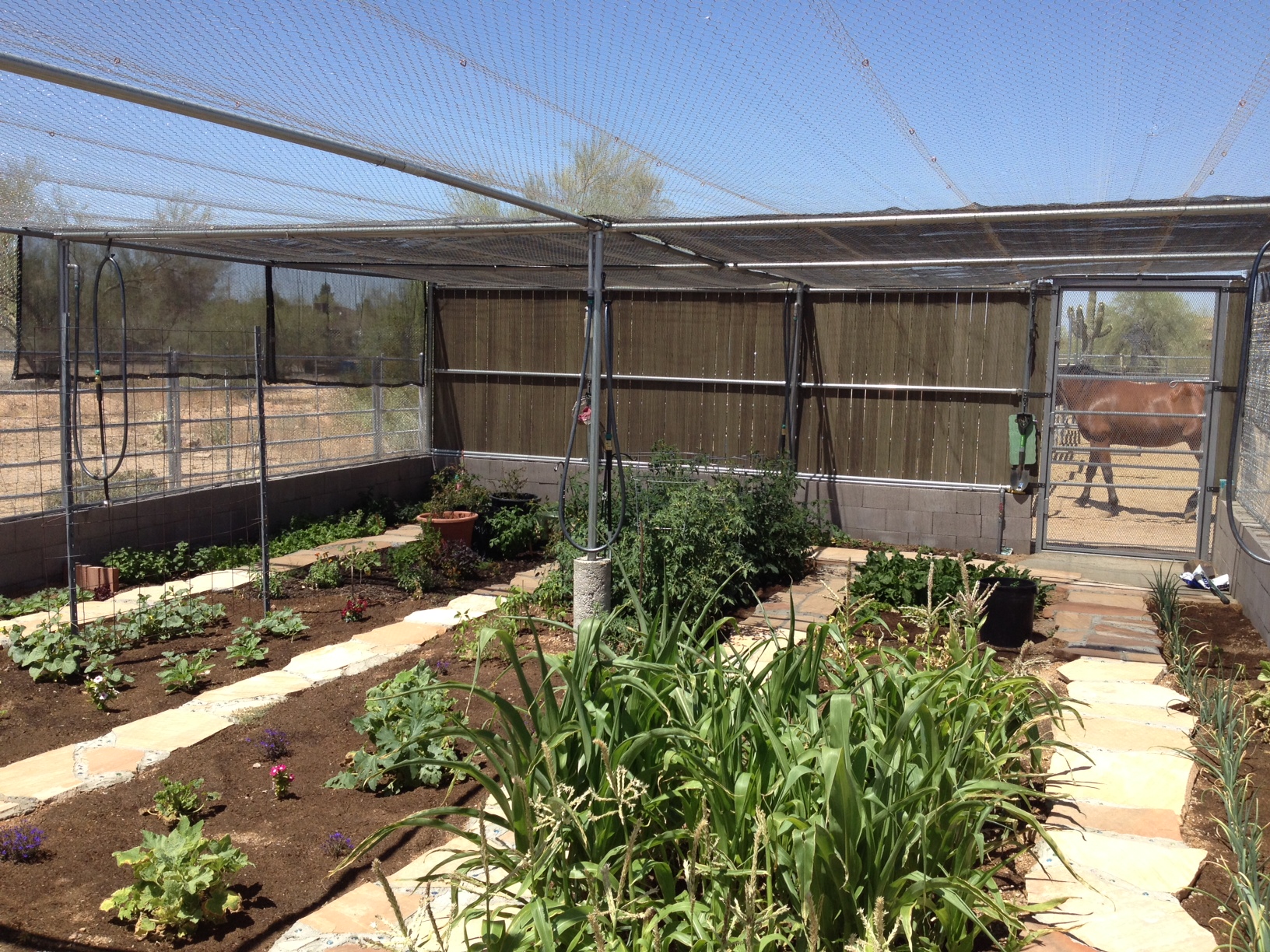 Here's a picture of my garden and how I have the shade on the enclosure. It sure feels better to me but my plants will be the judge.