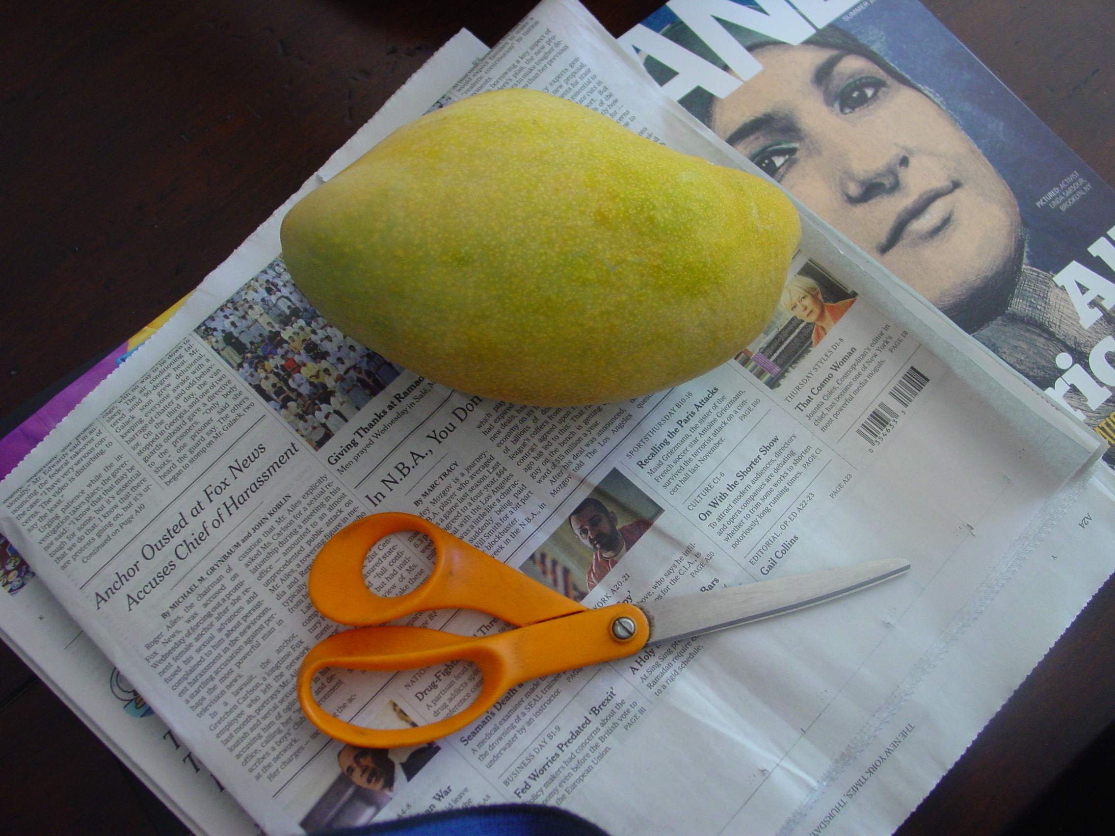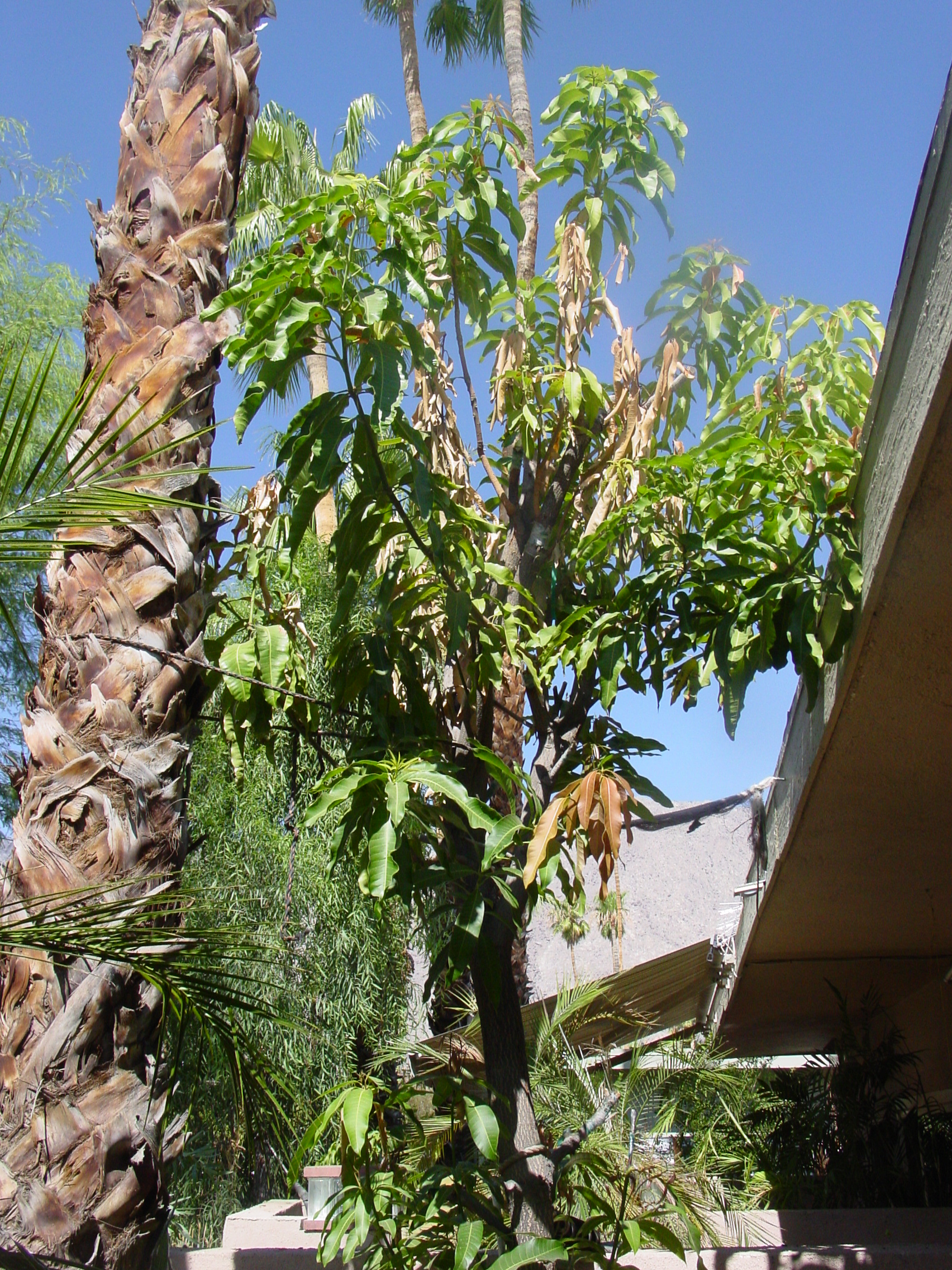 | Nice mango. Only one in 3 years. Well, it might start pumping them out when it gets better established. I have found grafted trees are very slow growing though. Seedlings are definitely more vigorous and I have had good luck with the fruit quality too even though they are seedlings. Wow, it looks like the sun hammered your trees. Well, at least you don't have frost problems like we do here.